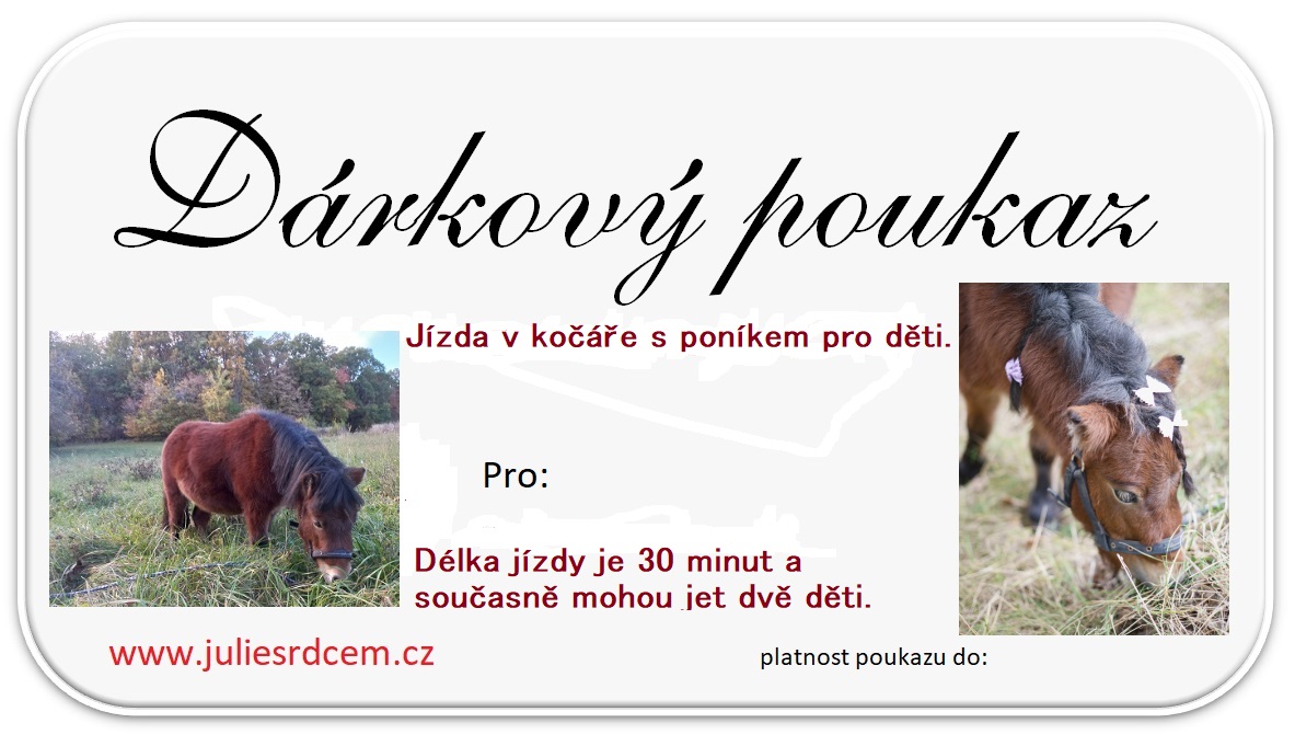 Hledáte originální dárek? Darujte radost. Návštěva Jůlinky a dalších kamarádů je vhodná pro kohokoliv. Pro babičku, dědečka či pro dítě. Poukaz lze také darovat například do dětského domova, domova pro seniory, dětské skupiny nebo jednotlivci. Napište nám a poukaz Vám vystavíme dle Vašich požadavků. Poukaz lze samozřejmě použít k jakékoliv příležitosti. Jako jsou například narozeniny či jiná událost.